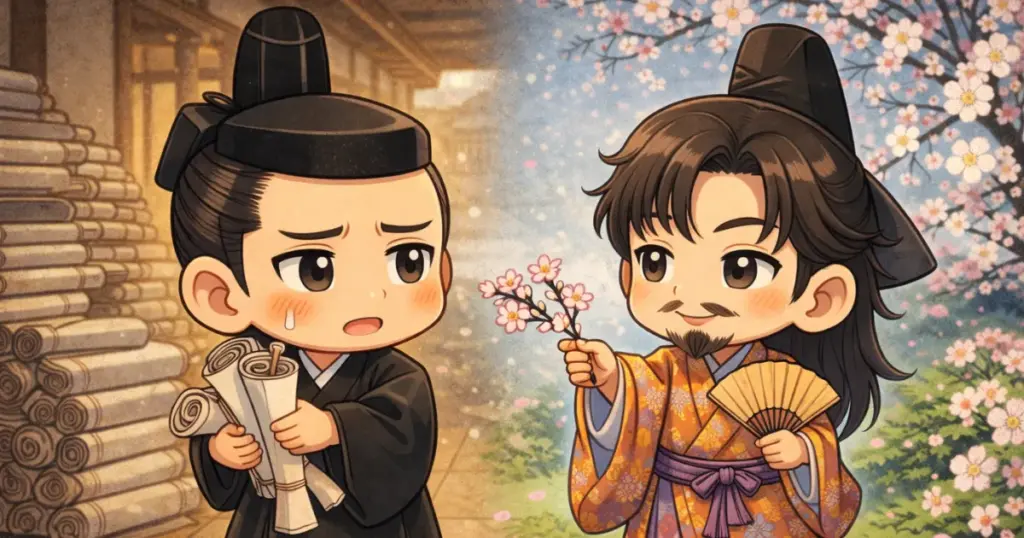 儒教道徳に縛られがちな道真にとって、自由奔放に愛と美を追求した業平の生き方は、ある種の憧れであり、凝り固まった心を解き放つ刺激だったのかもしれません。この異色の交流によって、道真の感性はより豊かに磨かれていきました。政治の世界に身を置きながらも、彼の本質はあくまで「詩人」であったこと。この矛盾こそが、後の彼の政治手法に独自の理想主義をもたらし、同時に悲劇の種をも孕んでいたと言えるでしょう。